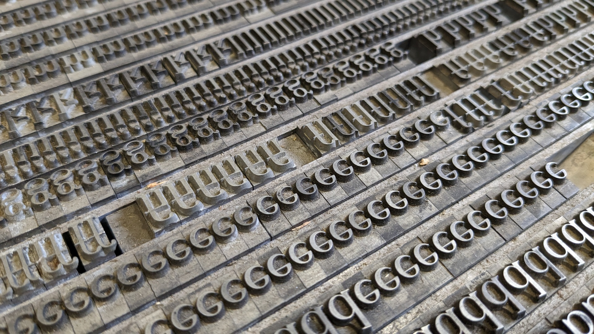 geschieht das durch Satzregale mit Blei- und Holzschriften und entsprechendem