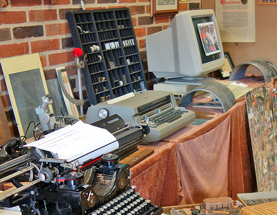 alten Schneidemaschine, Schautafeln, Fotos usw.