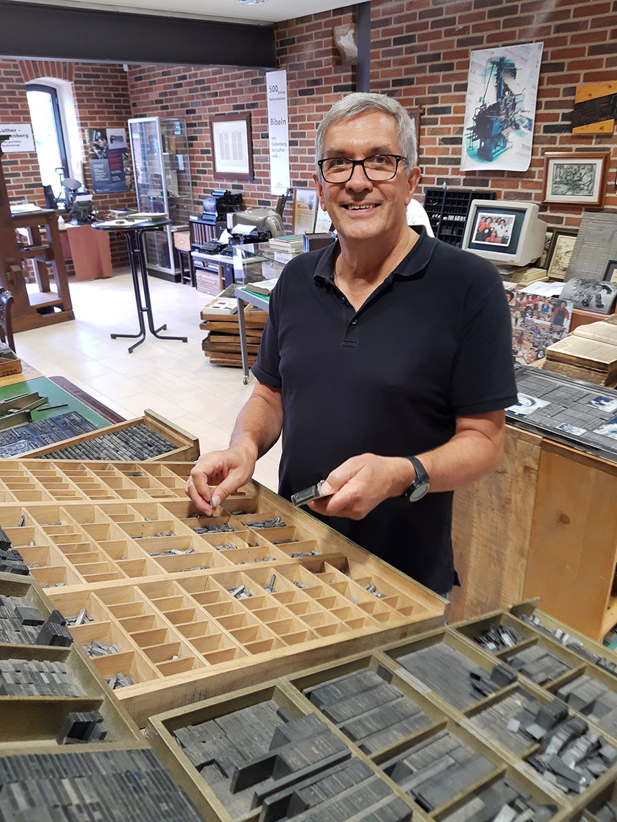 Bei unseren Führungen mit Kindern ist wohl das größte Erlebnis, dass man als Lehrling von Gutenberg, dem Erfinder des Buchdrucks mit beweglichen Lettern, das Setzen und Drucken unter fachkundiger Anleitung und Aufsicht durch Mitglieder des Vereins – selbst ausprobieren darf.